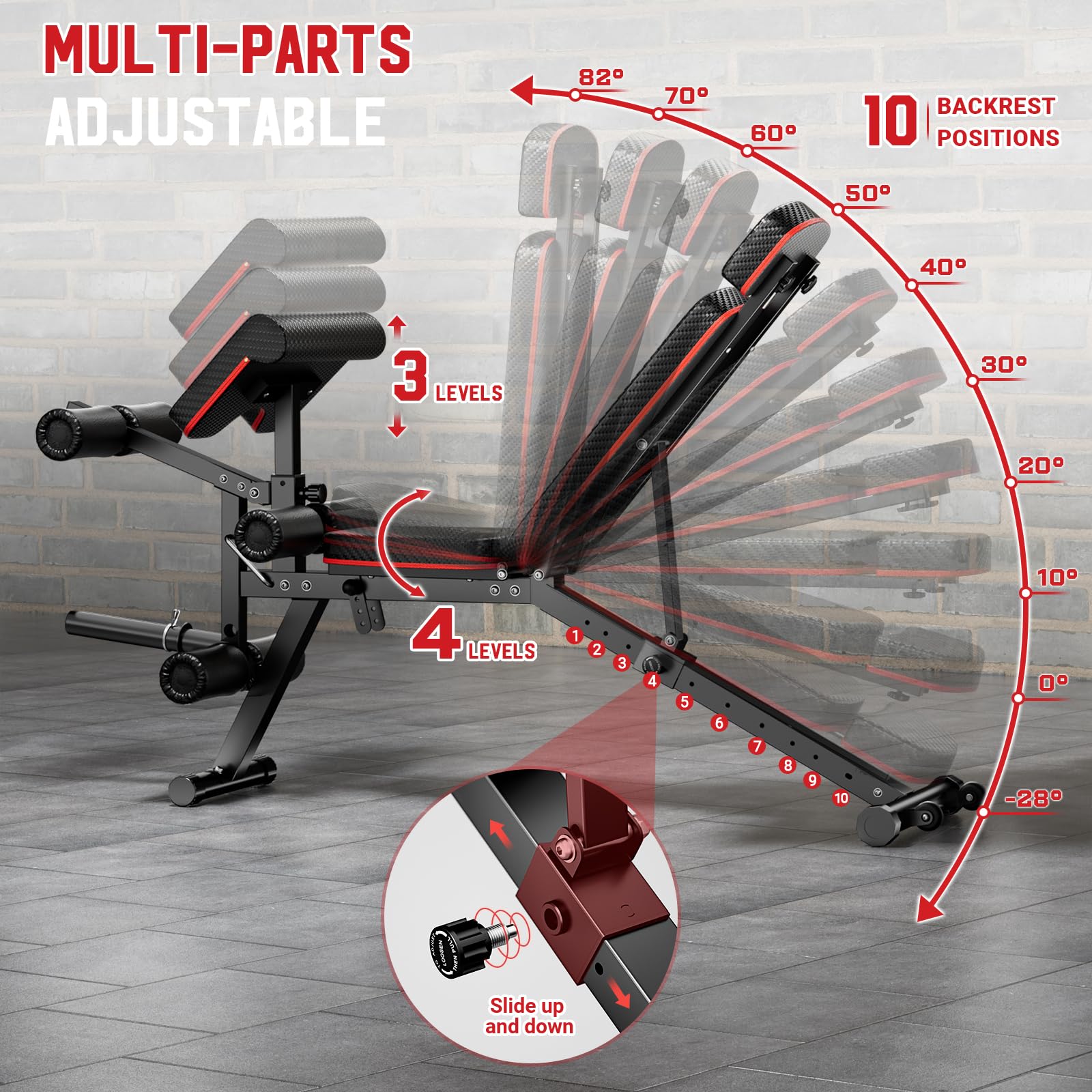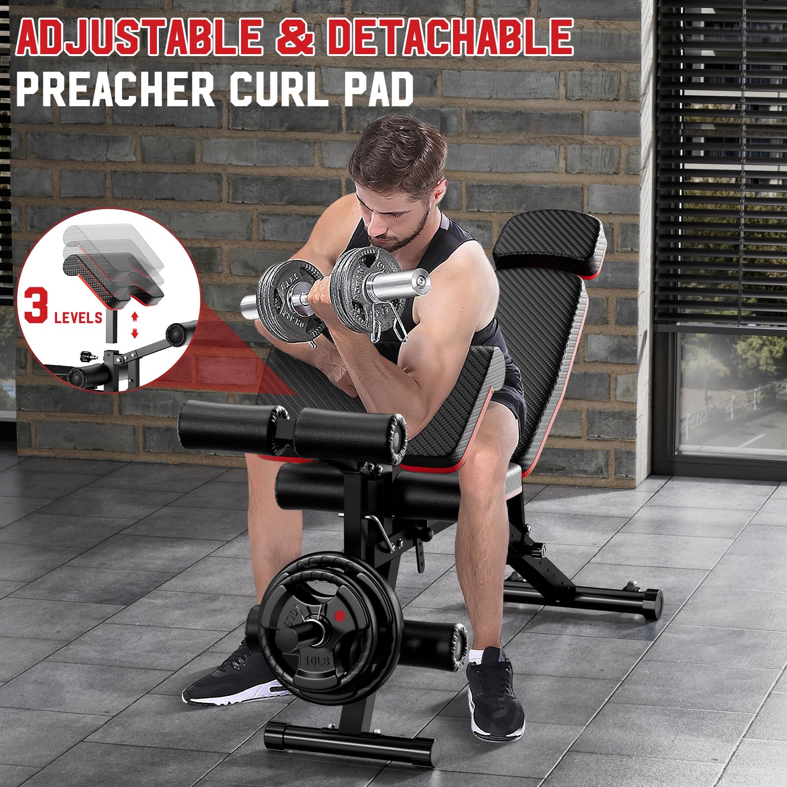 XDDIAS Weight Bench, 900LBS Workout Bench With Leg Extension For Home Gym Equipment, Adjustable Strength Training Bench with Preacher Curl Pad And Extended Headrest, Decline Bench For Full Body Fitness