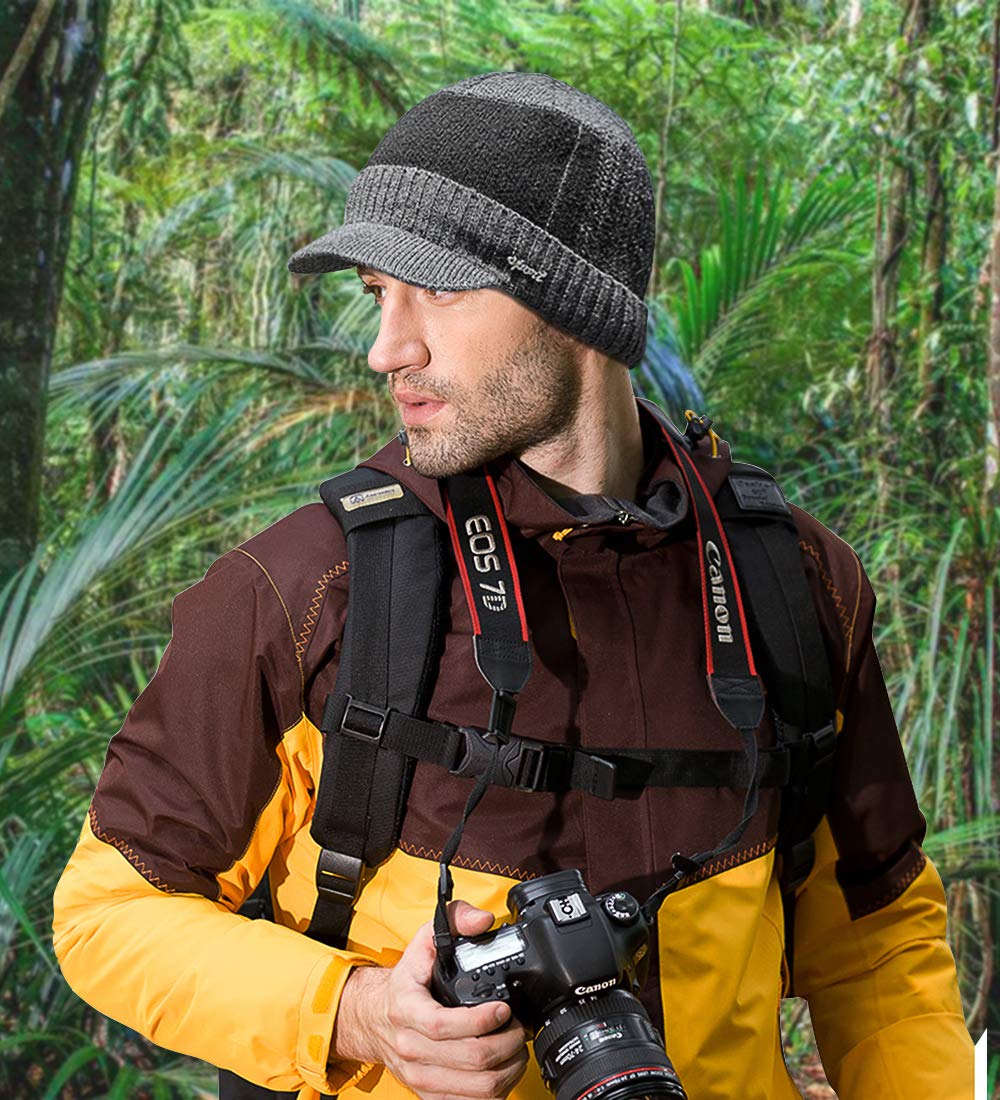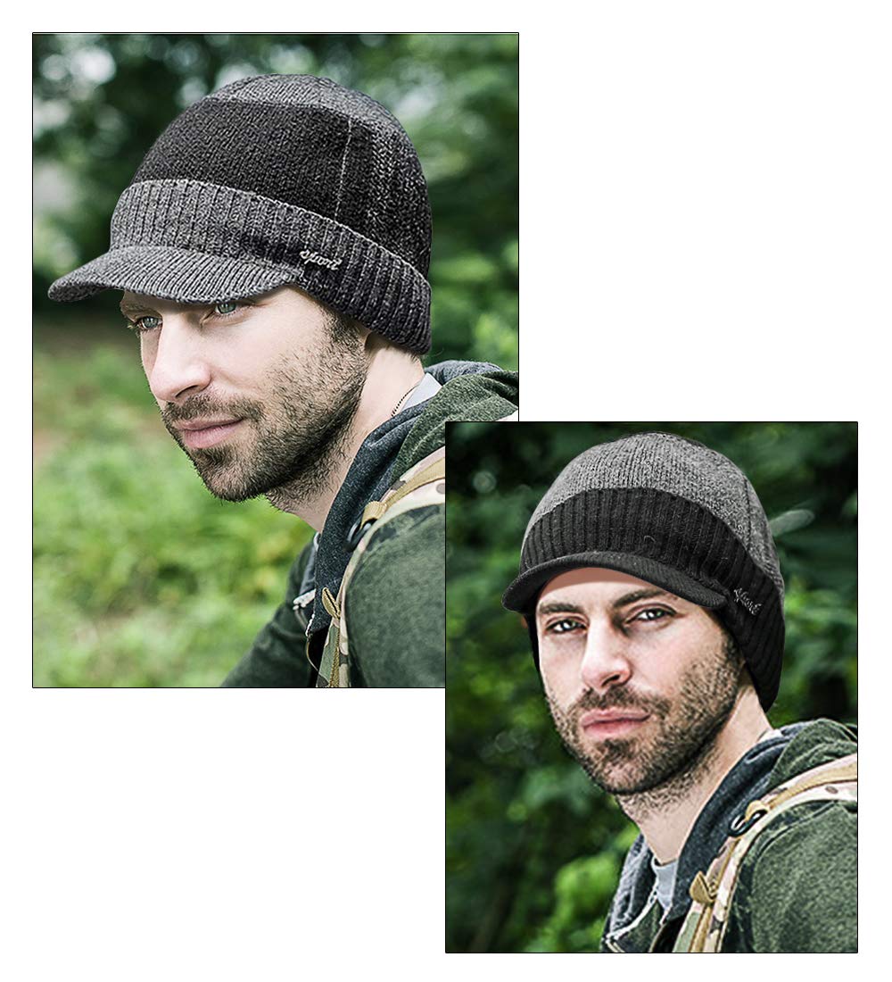 YOYEAH Men's Outdoor Newsboy Hat Winter Warm Thick Knit Beanie Cap Fleece Lined Skull Ski Cap with Visor Gray