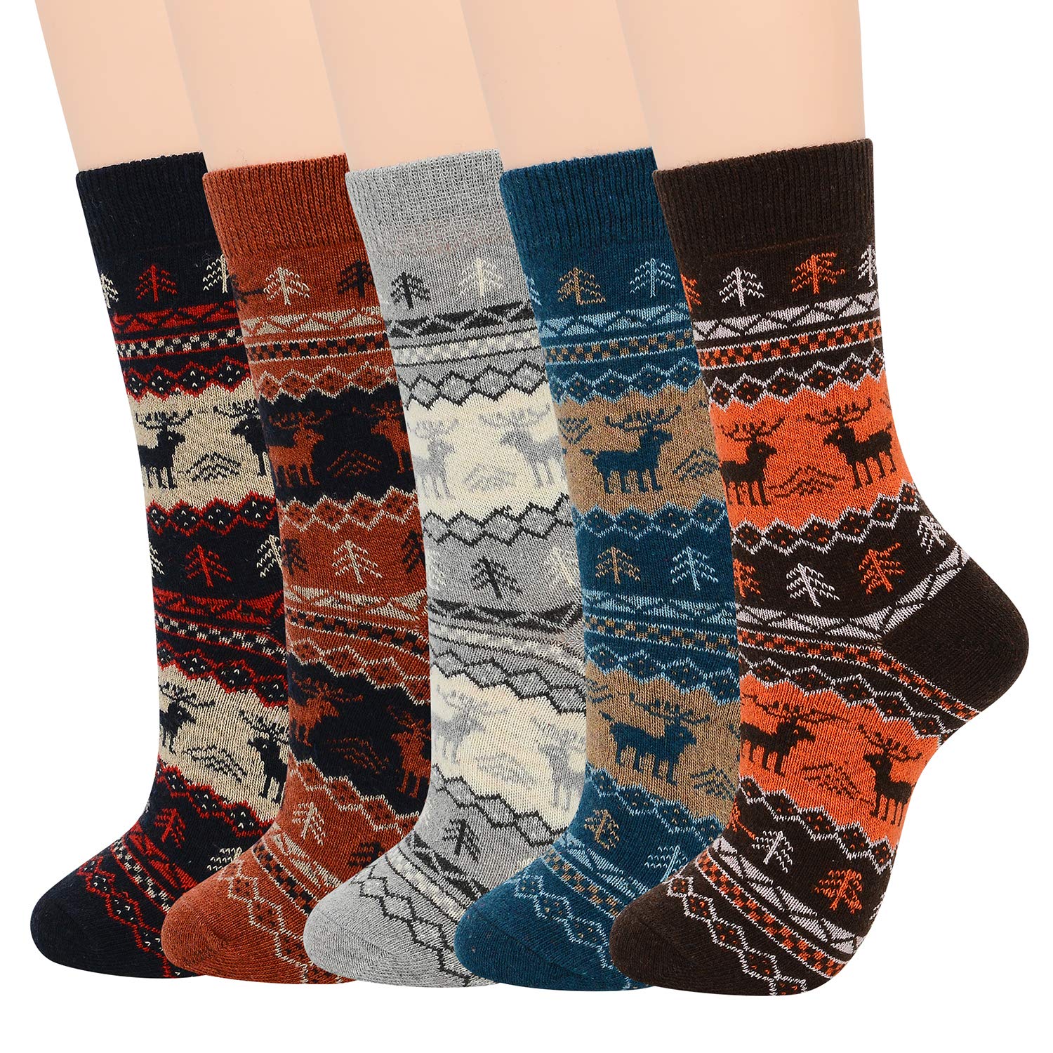 Zando Mens Wool Socks Athletic Socks Soft Warm Socks Thick Fall Winter Socks Crew Socks Knit Cozy Socks Hiking Socks Wool Socks for Men Christmas Deer Shoe Size:6-10