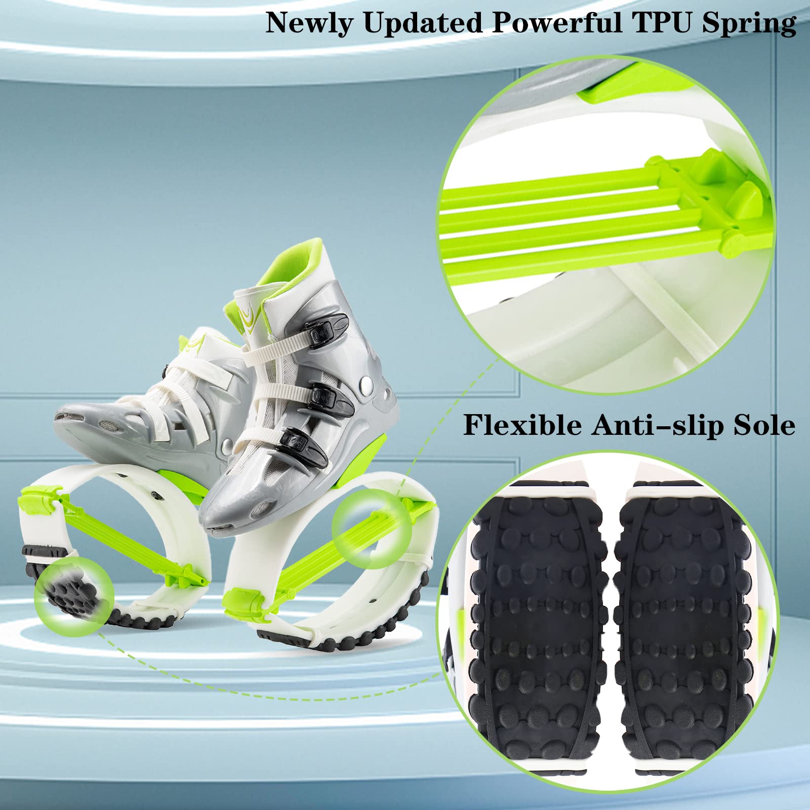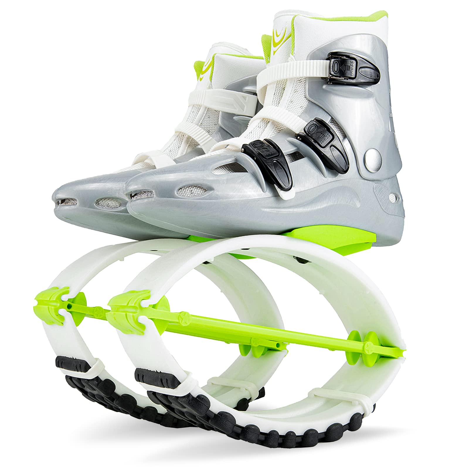 ZCOINS Bounce Jumping Shoes, Adjustable Non-Slip Fitness Jump Shoes,Unisex Bounce Shoes for Adults/Kids, Sliver Green, M (US Size Kid 1-3, 8.5-9 in/60-110 lbs)